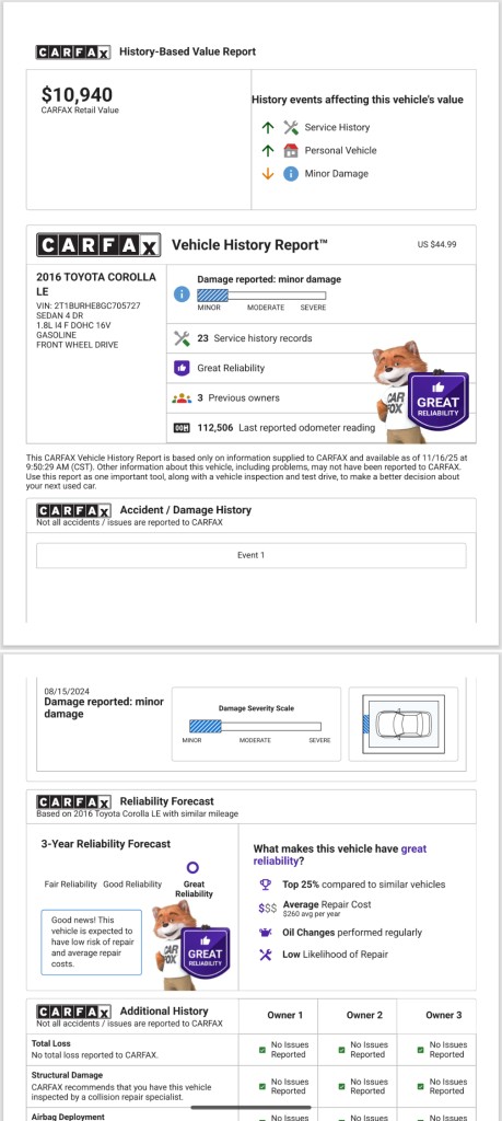 Looking for a reliable car and gas saver. Toyota Corolla is super reliable and in mint condition inside out.